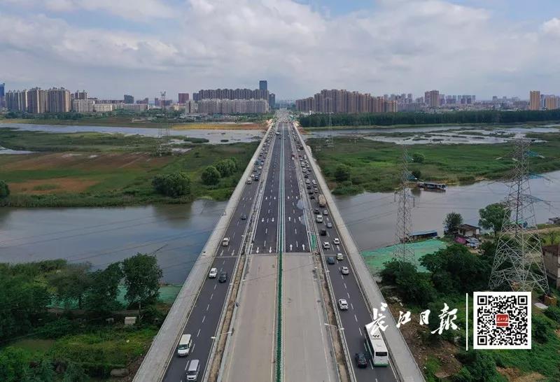 6月6日,武漢北大門——岱黃高速府河大橋綜合整治提升工程全部完工,新建橋梁連同老橋(老橋兩側(cè)各加寬兩車道)形成雙向八車道,當(dāng)日15時全面對社會開放。