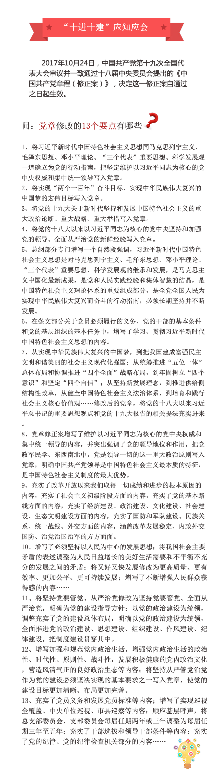 什么是“十進十建”? 一是進黨委(黨組)工作議程和中心組學(xué)習(xí)安排,建立健全日常工作和學(xué)習(xí)制度; 二是進黨政機關(guān)日常工作和學(xué)習(xí)安排,建立健全機關(guān)紀(jì)委和紀(jì)檢員日常...2018-10-12