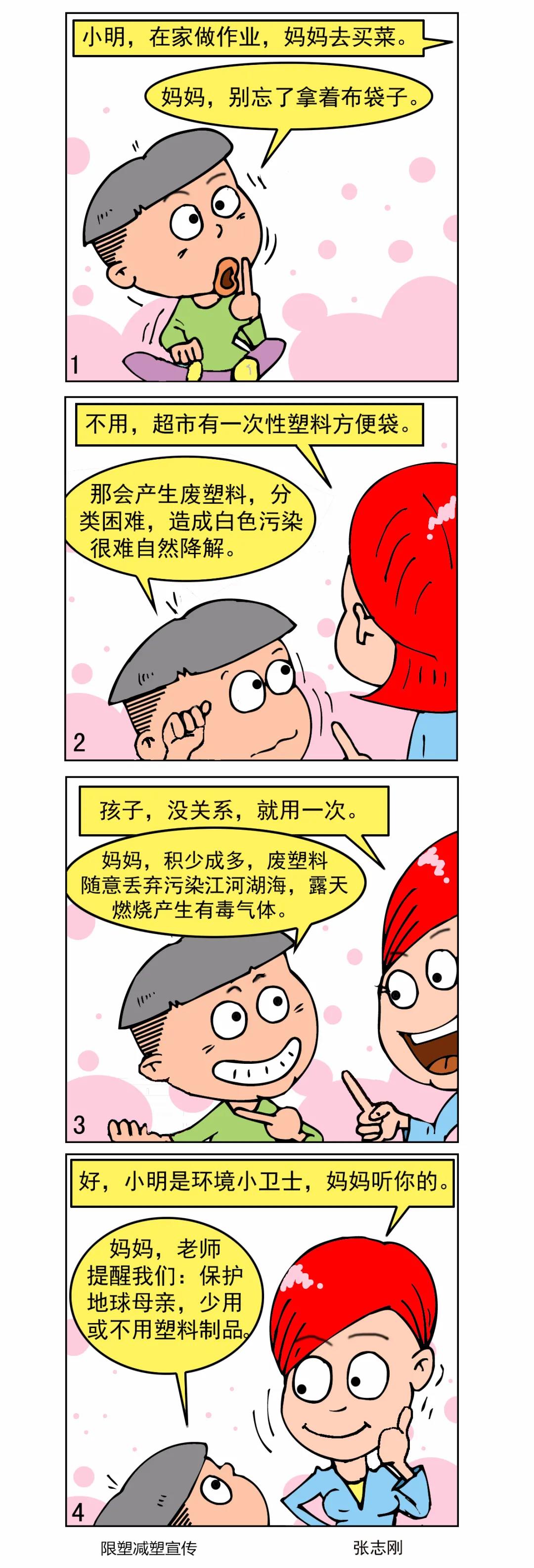 近日,國家發(fā)展改革委、生態(tài)環(huán)境部、工業(yè)和信息化部、住房城鄉(xiāng)建設(shè)部、農(nóng)業(yè)農(nóng)村部、商務(wù)部、文化和旅游部、市場監(jiān)管總局、供銷合作總社等九部門聯(lián)合印發(fā)《關(guān)于扎實(shí)推進(jìn)塑料污染治理工作的通知》,對(duì)進(jìn)一步做好塑料污染治理工作,特別是完成2020年底階段性目標(biāo)任務(wù)作出部署。中華環(huán)保聯(lián)合會(huì)作為環(huán)保社會(huì)組織,在生態(tài)環(huán)境部宣傳教育司的指導(dǎo)下,設(shè)計(jì)制作“限塑減塑”宣傳漫畫產(chǎn)品,引導(dǎo)公眾參與,傳播“限塑減塑”知識(shí),倡導(dǎo)少用或不用塑料制品的綠色生活好習(xí)慣。